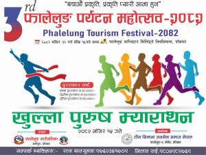 पाँचथरको फालेलुङ गाउँपालिकामा खुला पुरुष म्याराथन प्रतियोगिता हुने भएको छ। फालेलुङ–३ र ४ नम्बर वडाको संगमस्थल थाप्लिडाँडा–सिर्लिङी टारमा आयोजना गर्न लागिएको ‘तेस्रो फालेलुङ पर्यटन महोत्सव’ को अवसरमा म्याराथन हुने तीनसिमाना जनसेवा समाज नेपाल, मेमेङले जानकारी दिएको छ।