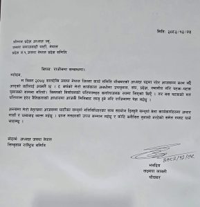 राजीनामा पत्रमार्फत उनले आफ्नो कार्यकालभर साथ र सहयोग गर्ने सम्पूर्ण नेता तथा कार्यकर्ताप्रति आभार व्यक्त गरेका छन्। साथै, कसैप्रति कुनै असन्तुष्टि नरहेको पनि स्पष्ट पारेका छन्।